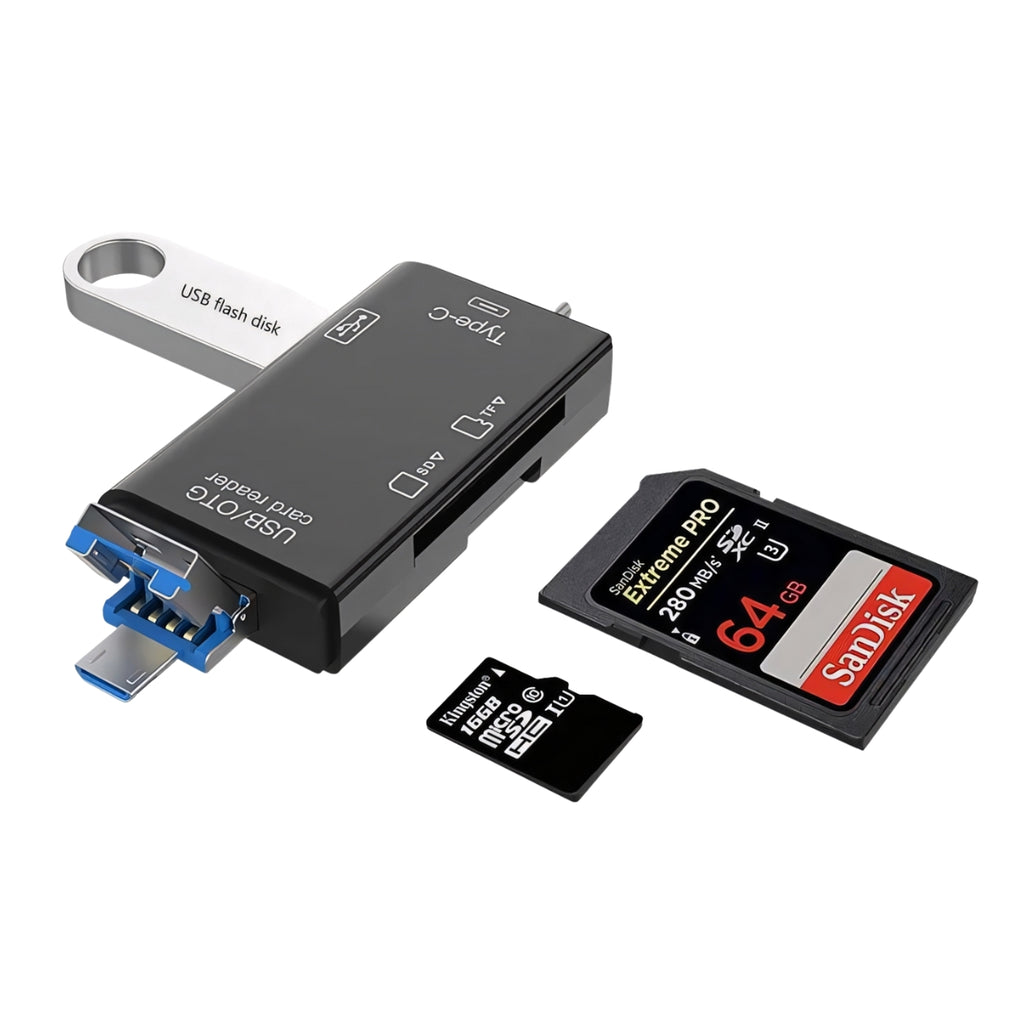 • 6 во 1 дизајн: поддржува SD, MicroSD (TF), SDHC, SDXC и други формати
